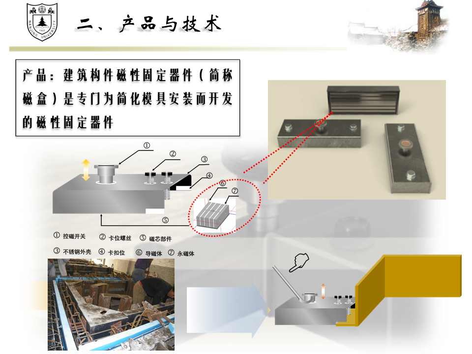 建筑构件磁性固定器件