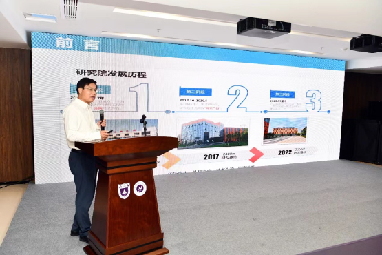 我院院长唐少春向与会嘉宾介绍了研究院十年建设发展情况,研究院初建于2012年7月,2013年5月正式运行。从长江西路288号1000平方米的办公场地逐步发展到目前拥有8000平方米的研发和中试场地,新大楼坐落于海安市高新区镇南路428号高科技创业园内。研究院已发展成为集技术开发与应用、成果转化、技术转移、行业咨询、材料检测等一体的科技服务平台。