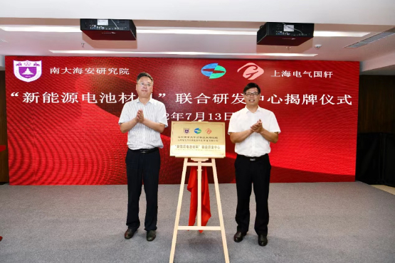 随后,上海电气国轩新能源科技(南通)有限公司与研究院共建“新能源电池材料”联合研发中心签约,研发中心将紧紧围绕新能源电池领域存在的科学技术问题开展联合攻关,开发新一代钠离子电池电极材料、电池控温节能系统等。陆延青副校长、夏卫军副市长等嘉宾一同见证了联合研发中心的签约仪式。高新房主任和刘志刚副局长共同为联合研发中心揭牌。