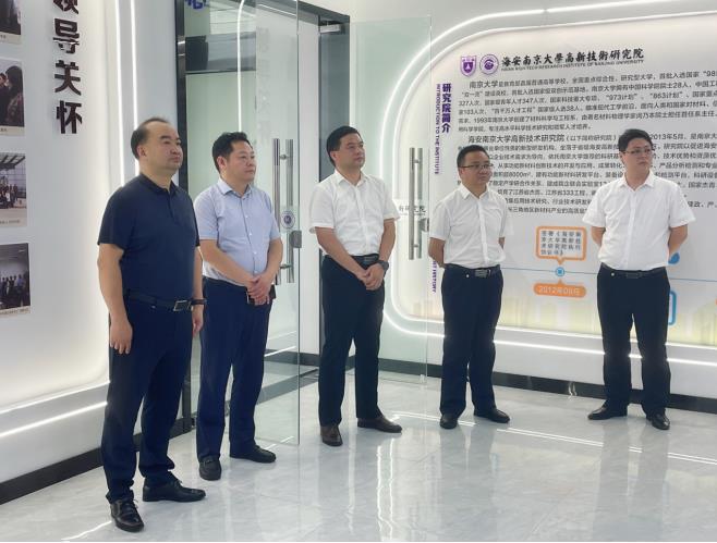8月2日下午,南京航空航天大学党委常委、副书记陶勇,南京航空航天大学科学技术研究院常务副院长孙永荣,江苏华瑞国际实业集团董事长、南航南京校友会会长康宜华一行莅临我院调研考察。海安市副市长夏卫军,海安市科学技术局党组书记、副局长王晓聪,海安市科学技术局局长任镇,海安市科学技术局副局长陈进荣,海安高新区党工委副书记、管委会副主任陆建银等陪同调研,我院院长助理周鸿运负责接待。
