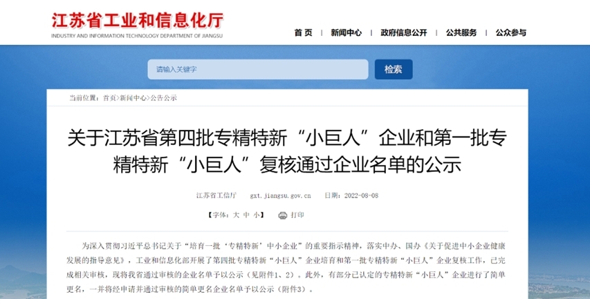 近日,根据国家工信部统一部署,江苏省工信厅发布了《关于江苏省第四批专精特新“小巨人”企业和第一批专精特新“小巨人”复核通过企业名单的公示》,与我院开展产学研全面深度合作的江苏飞亚化学工业集团股份有限公司、海安浩驰科技有限公司成功通过国家工业和信息化部审核验收,正式获批国家级专精特新“小巨人”企业。