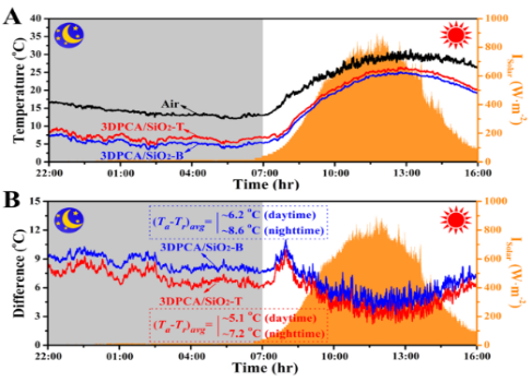 传统的主动降温系统(如空调)在冷却降温时,往往伴随着大量的能量损耗以及对生态环境造成破坏的温室气体排放,寻求低能耗、环境友好的降温方式成为人们致力追求的目标。辐射冷却降温能够在不消耗任何不可再生能源的情况下,将热量以电磁波的形式辐射到外太空去,被认为是最有前景的被动降温方式。