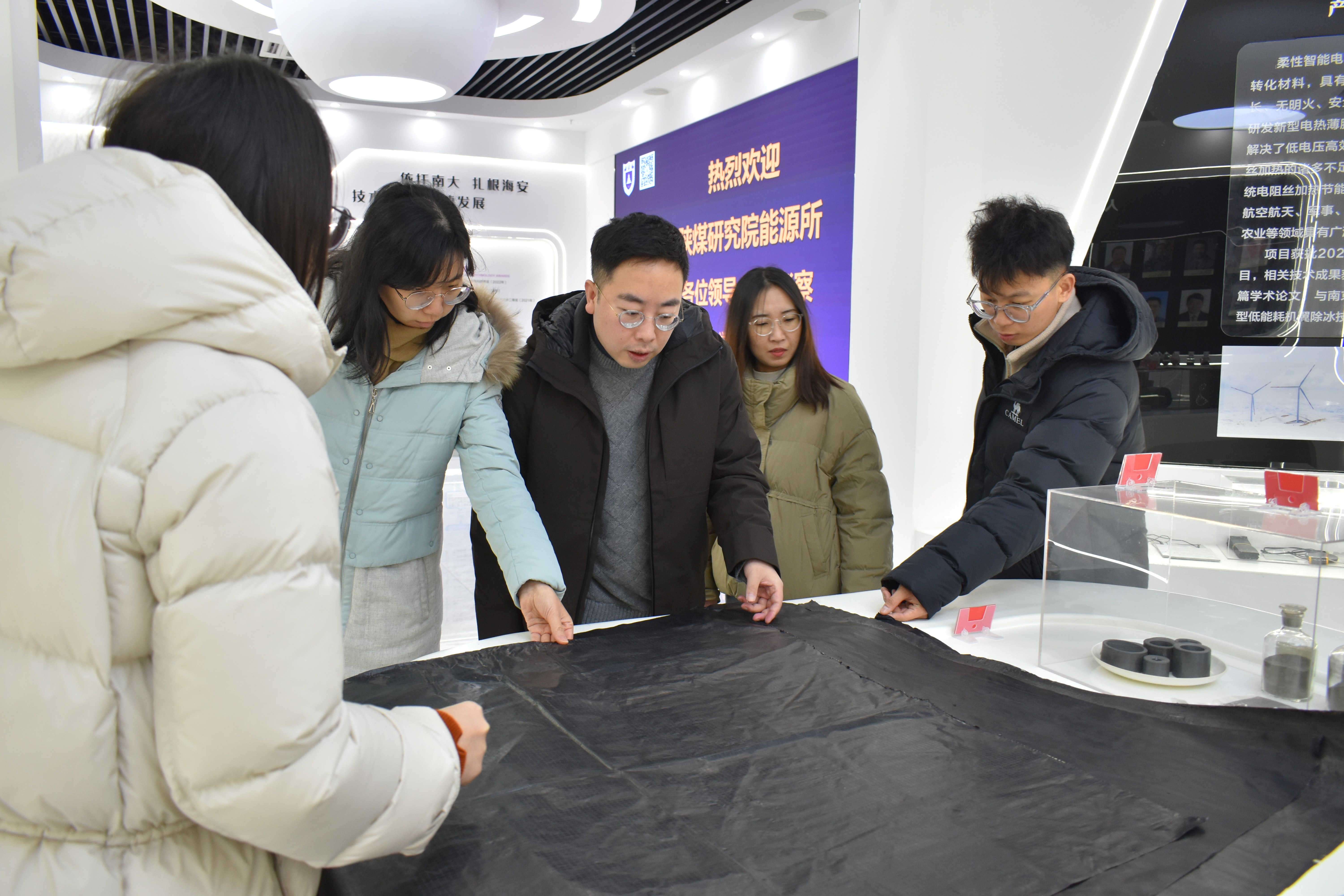 1月10日,陕煤研究院能源所秦岭计划主管赵森一行4人来我院交流。我院综合部主任吉素东带领赵主管一行观看研究院宣传片和展厅,并介绍了研究院的发展历程、功能定位、人才团队,展示了由我院团队开发、推广应用的科技产品。